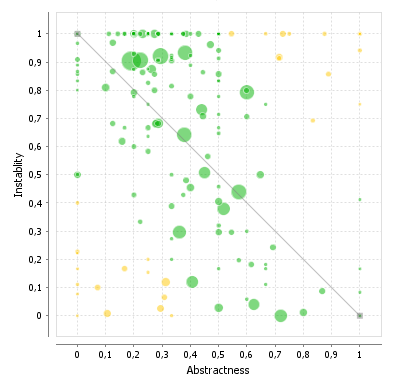 다음과 주계열과의 거리를 수치화하여 지표로 삼는다면, 현재 설계한 컴포넌트들이 잘 설계가 되었는지, 우선적으로 검토해볼 만한 컴포넌트는 무엇인지 알 수 있을 것이다.