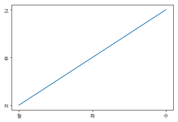 plt.yticks([1,2,3], ['저', '중', '고']) # y축 단위 바꾸기