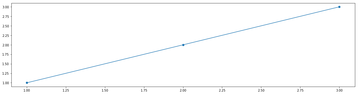 plt.plot([1,2,3], [1,2,3], marker='o')