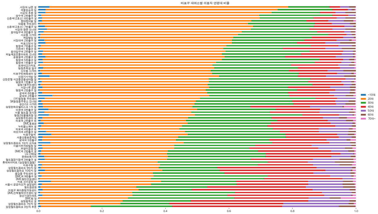 대여소 순서는 이용 비율이 제일 많은 20대 기준으로 정렬하였다.